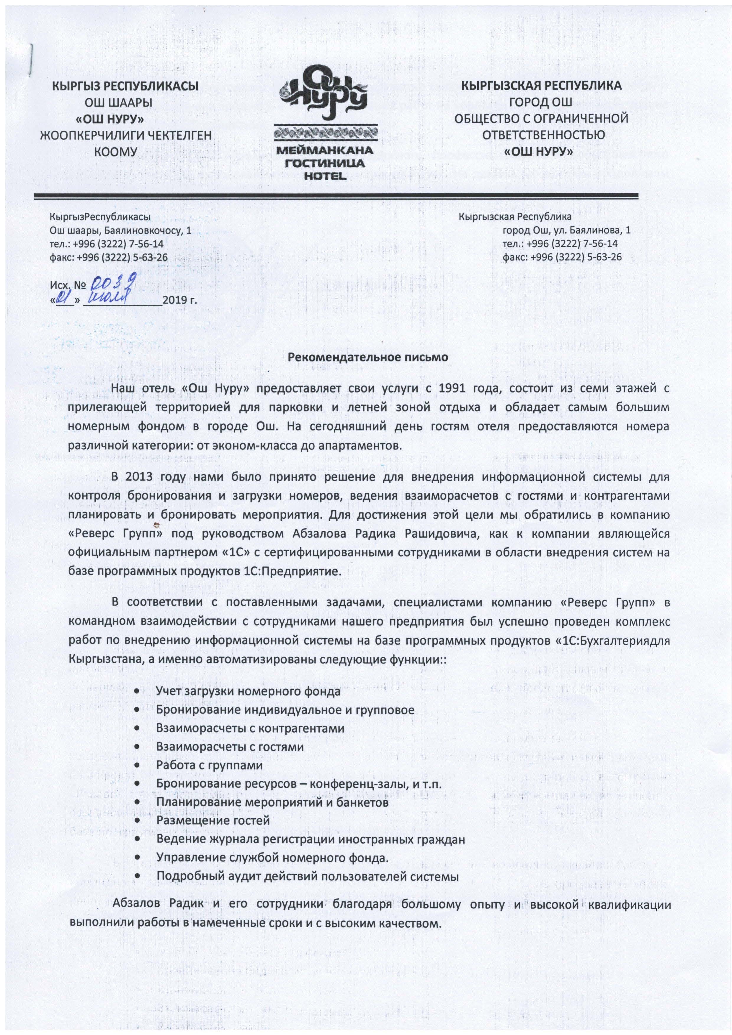 Благодарим компанию «Сервис kg» за оперативное внедрение продуктов 1С на нашем предприятии.Персонал компании зарекомендовали себя как грамотные и квалифицированные специалисты, способные решать оперативно самые сложные задачи. Поделиться: