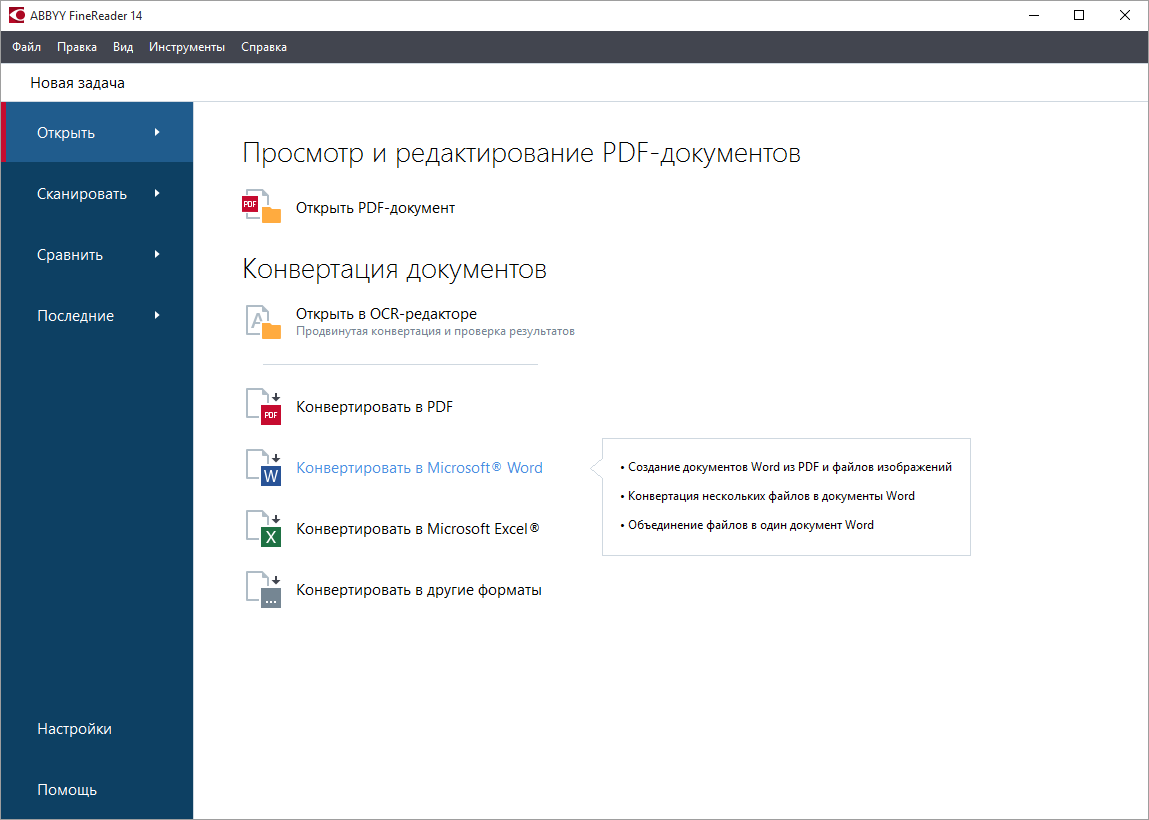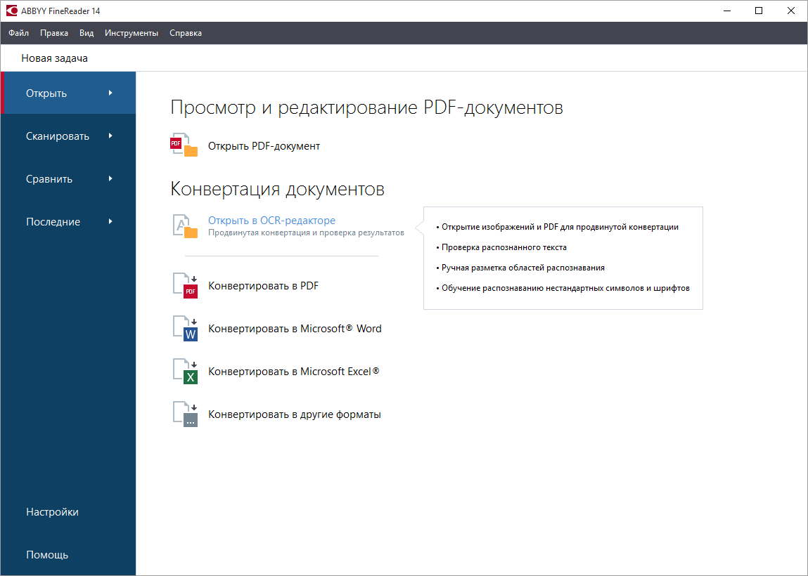 ABBYY FineReader 14 предоставляет широкий спектр возможностей в одной программе, сочетая в себе лидирующие технологии распознавания ABBYY OCR и нужные инструменты для работы с различными типами PDF. Вы можете создавать, редактировать, согласовывать, сравнивать и защищать документы, а также конвертировать их в редактируемые форматы.